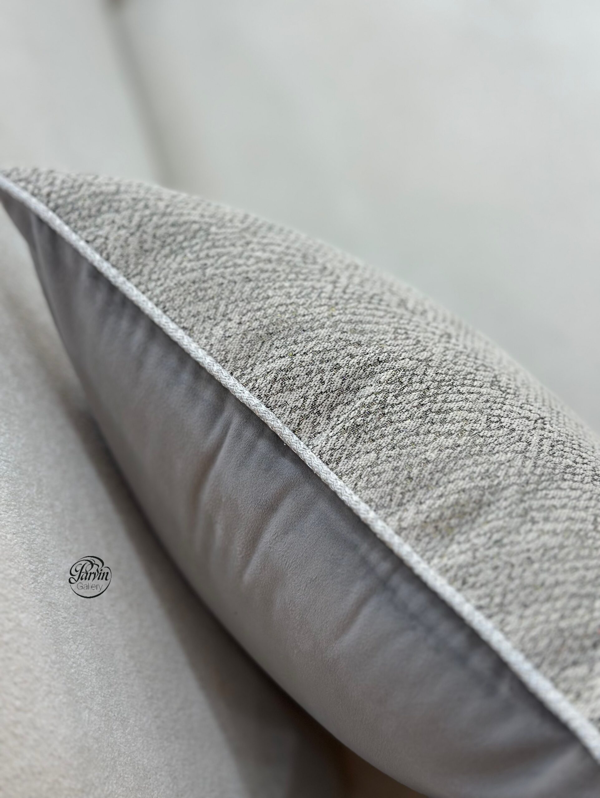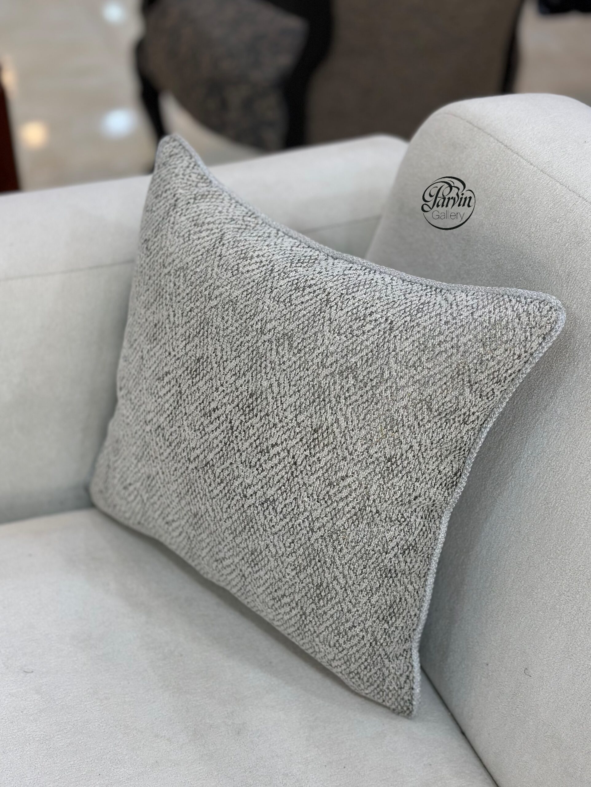 کوسن مربعی نقره ای /طوسی طرح ورساچ مدل PELIN1 دوخته شده مغزی دوزی با نوار قیطان نقره ای در ابعاد استاندارد 40*40 / 45*45 تولید می شود . این کوسن بصورت کاور وپرشده نیز قابل سفارش است.
